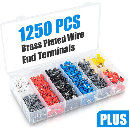 Ferrule Crimping Tool Kit, Crimper Plier with 1250PCS Wire Ferrules Kit Wire End Terminals, Self-adjustable Ratchet Tool Set